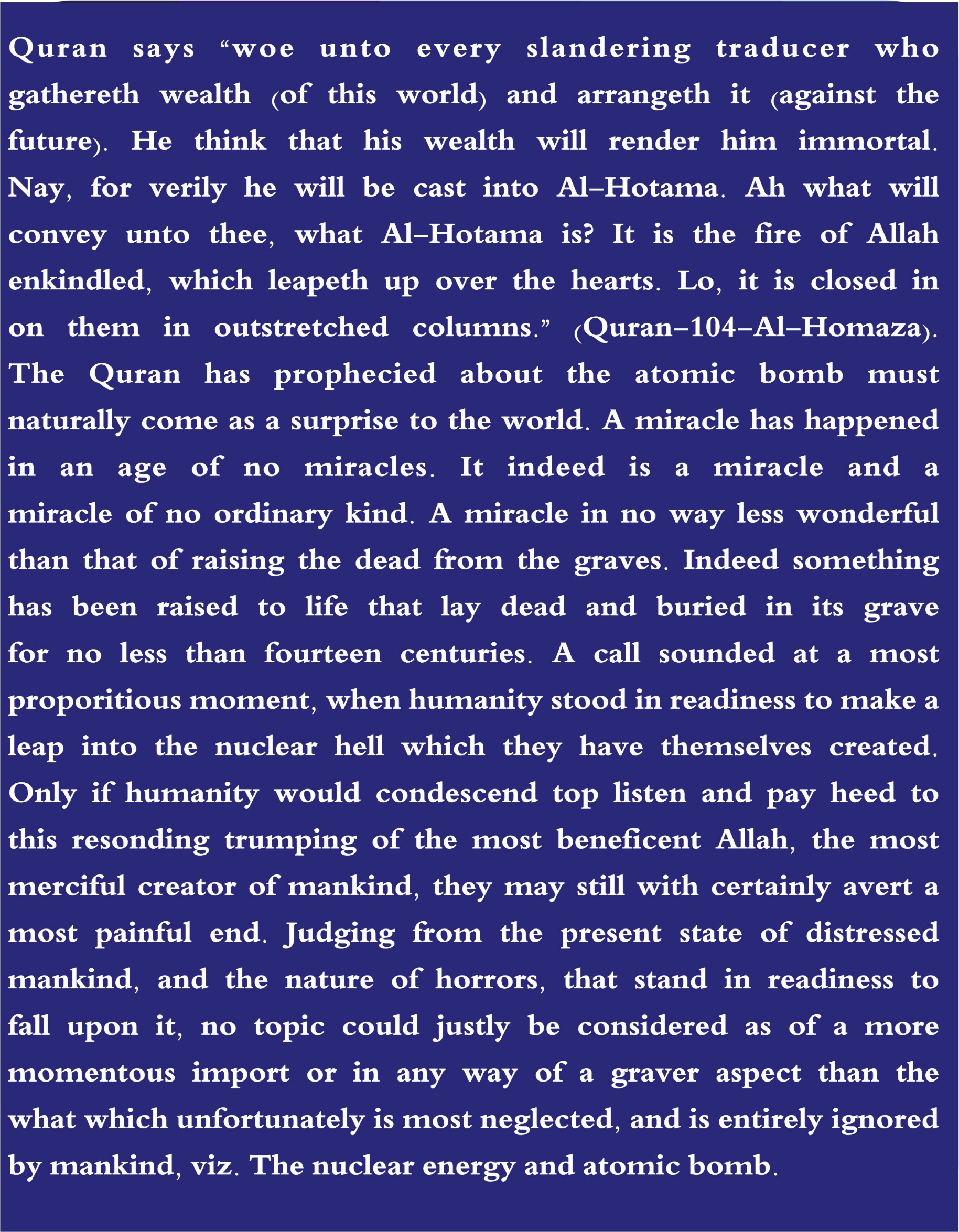 1. ایٹمی جہنم کے متعلق قرانی پیشن گوئی